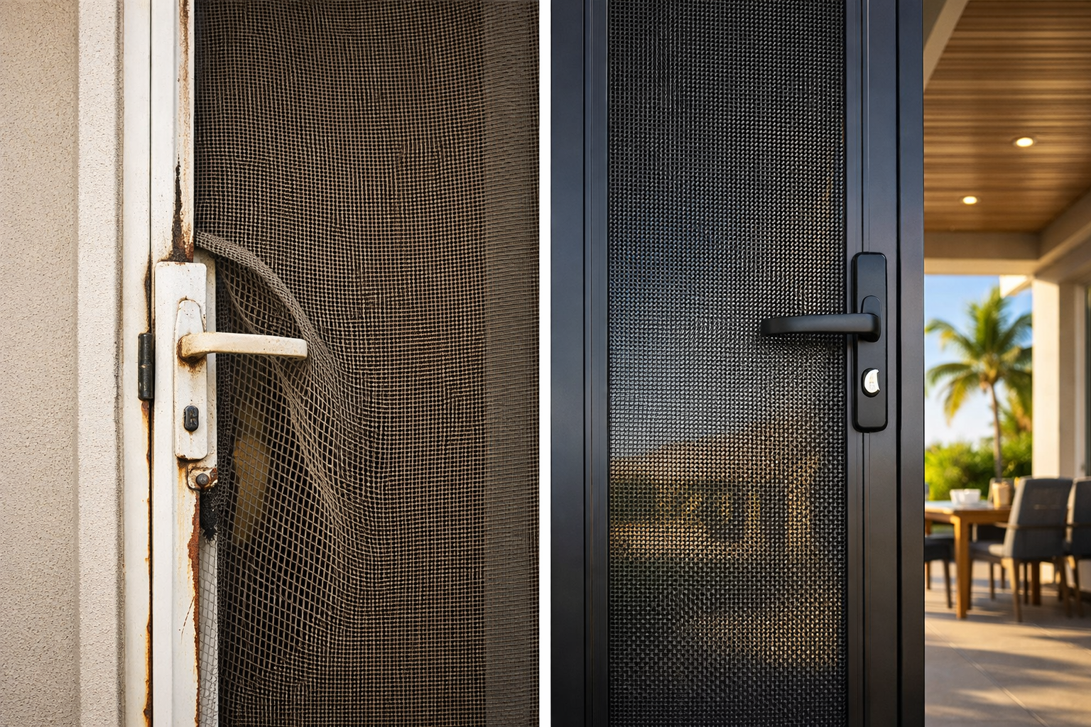 Budget screen products often use a thinner mesh that stretches or deforms when force is applied. Frames may twist or loosen over time, especially on hinged doors, bi-fold doors, stacker doors, French doors, patio doors, or sliding doors that are opened daily. Once these components shift, the screen no longer offers reliable protection.